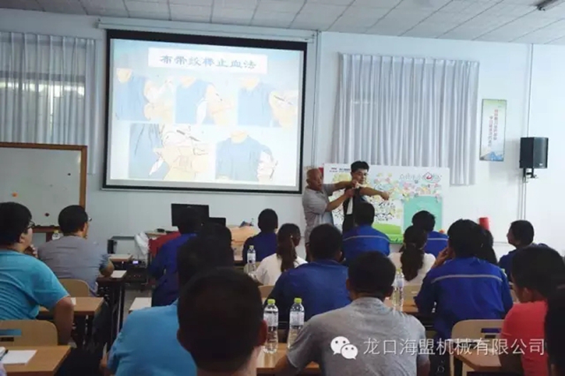 为了提高海盟公司员工的安全意识与自救互救能力,让员工能掌握应急救援技巧,在面对紧急情况能够正确的处置应对,海盟公司于2016年7月21日下午,在一场区培训室组织了全公司的应急救护培训。