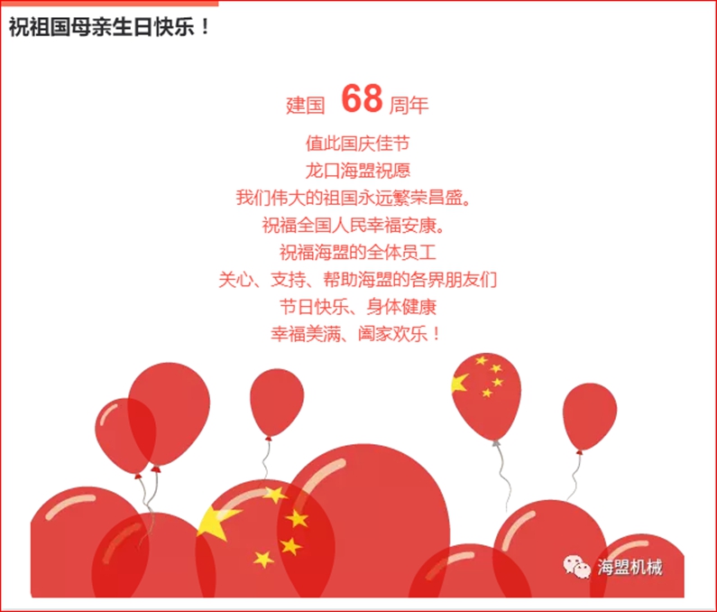 海盟祝祖国母亲生日快乐,祝大家国庆节快乐!