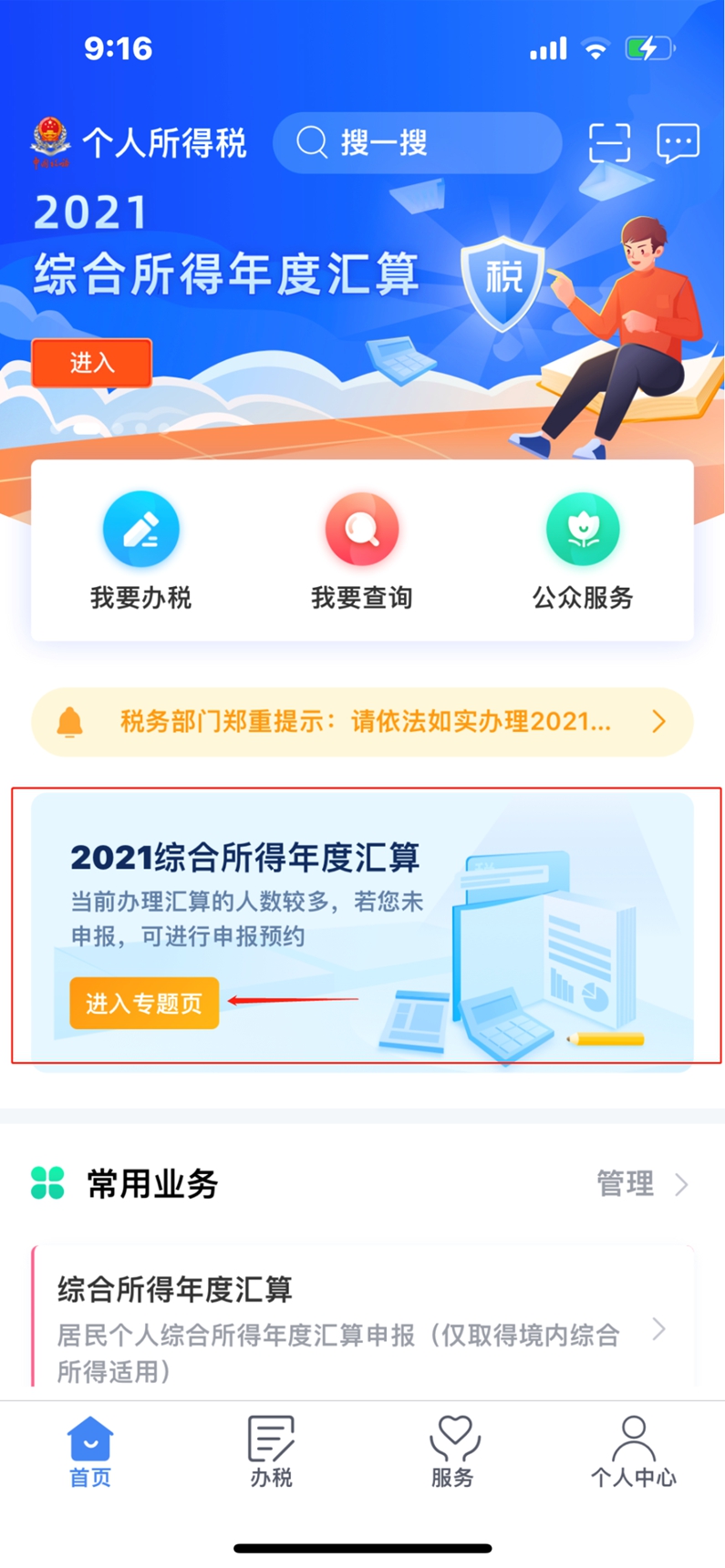1. 登录个税APP--找到2021综合所得年度汇算,点【进入专题页】