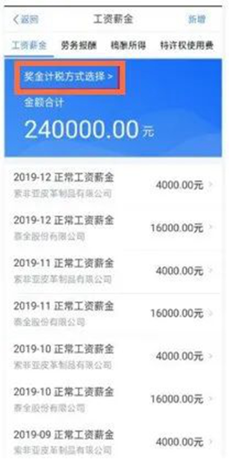 4.进入标准申报页面,点开【工资薪金】--【奖金计税方式选择